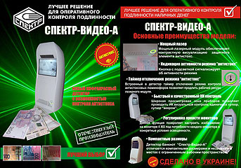 Новий відеоролик-інструкція по роботі з інфрачервоними детекторами валют Спектр-Відео-А, Спектр-Відео-А. Бестселери ТМ СПЕКТР для експрес-контролю банкнот.